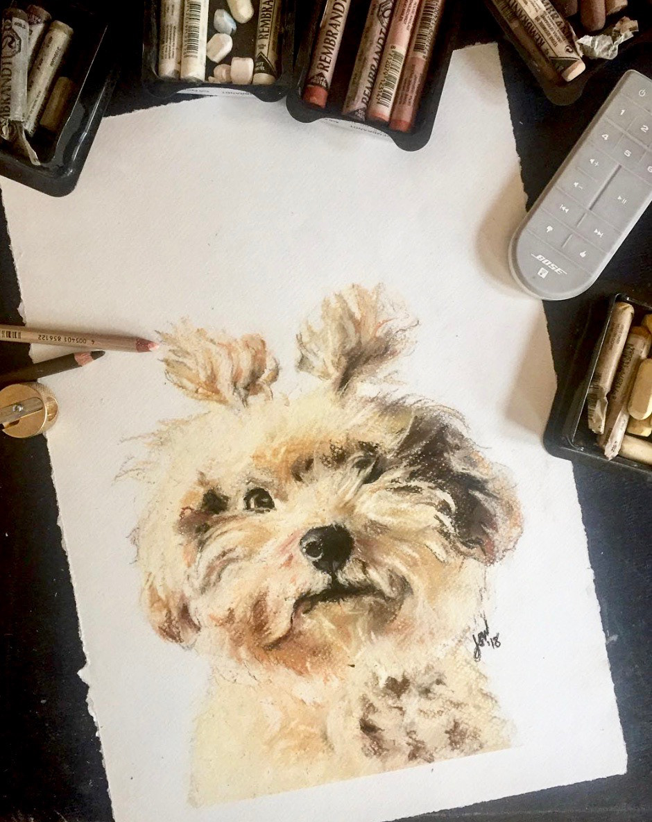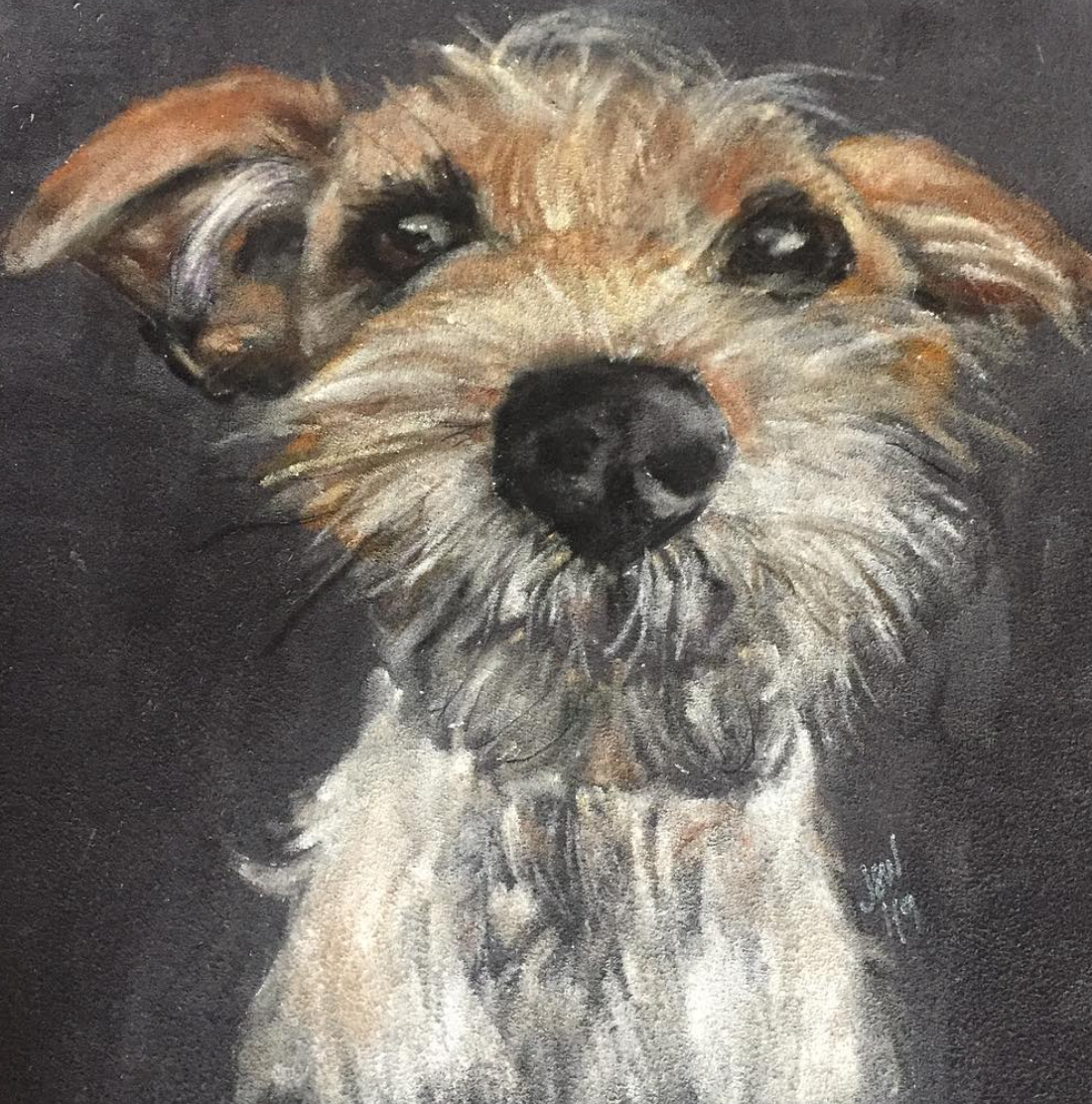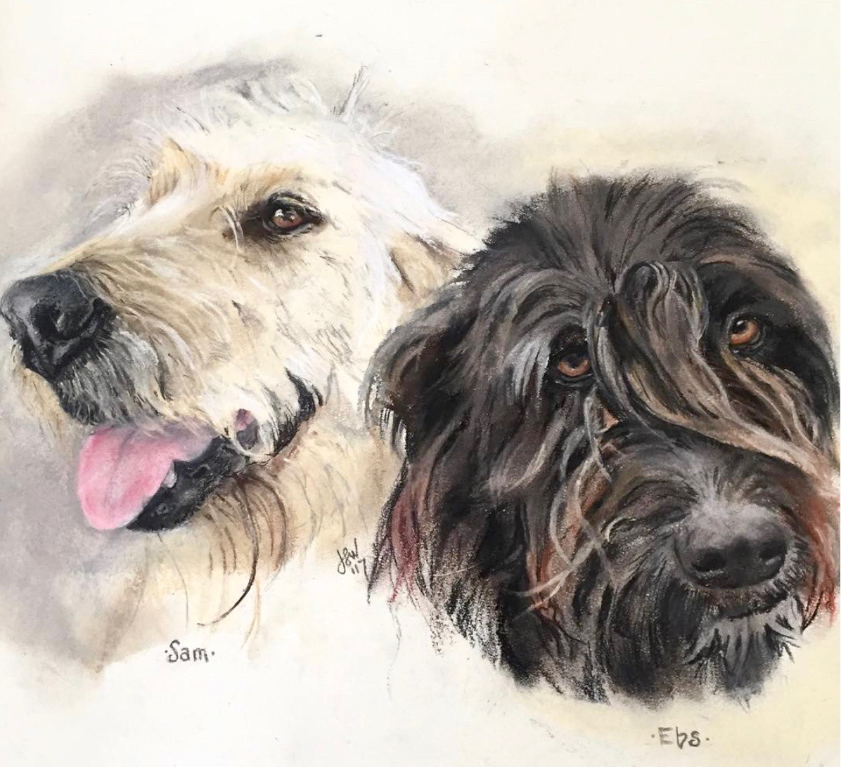 Commissioned portraits of canine friends, all in pastels. Learn more about commissions